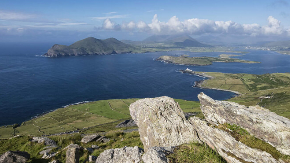 The Ring of Kerry is a 179-kilometer (111-mile) circular tourist route in County Kerry, Ireland. Traditionally the route begins and ends in Killarney, and passes through towns and villages including Killorglin, Glenbeigh, Cahersiveen, Waterville, Sneem, and Kenmare. The route is known for some of Ireland’s most beautiful scenery, including the MacGillycuddy's Reeks mountain range, the Lakes of Killarney, the Skellig Islands, and the Dingle Peninsula. The map below shows locations on the route of the Ring of Kerry.